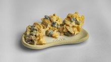 White chocolate clusters with cornflakes, pistachio nuts, dried cranberries and roasted almonds.